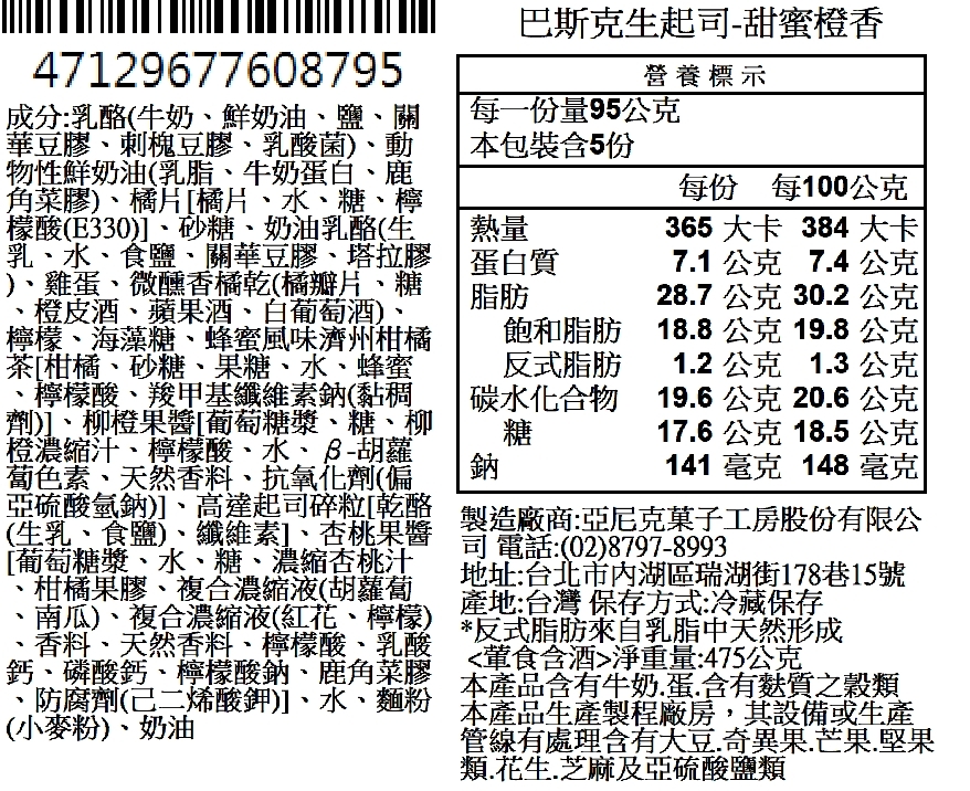品名:橙光橘香巴斯克生起司