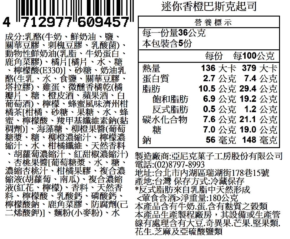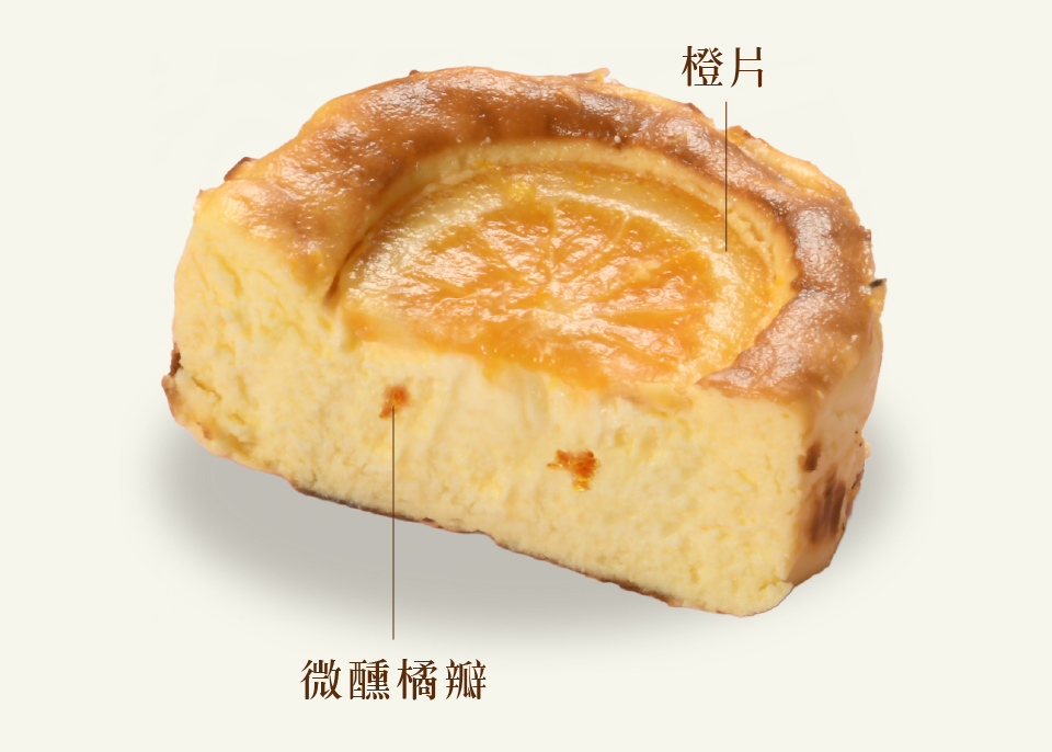 主要內容物:澳洲奶油乳酪/北海道奶油乳酪/法國鮮奶油/高達乳酪/微醺香橘辦/柳橙果醬/橘片