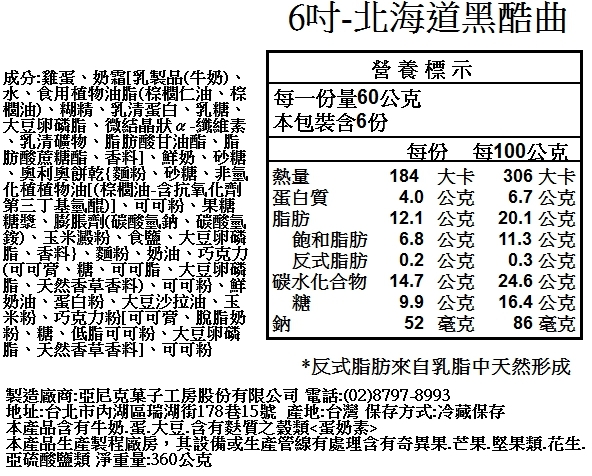 品名:北海道黑酷曲