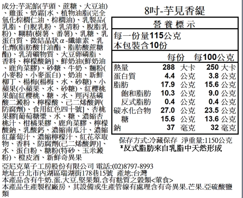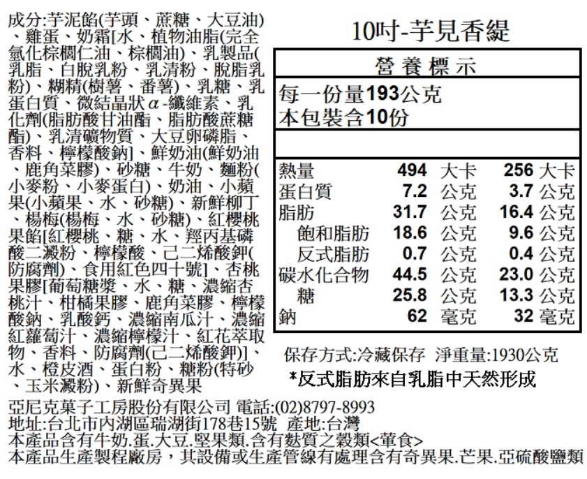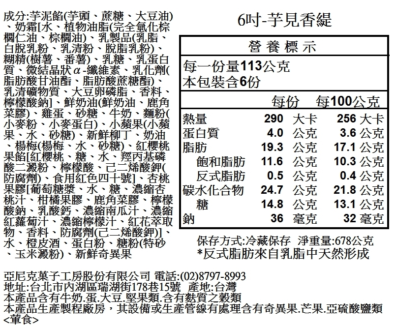 主要內容物:北海道奶霜/泡芙蛋糕體/芋泥/法國鮮奶油