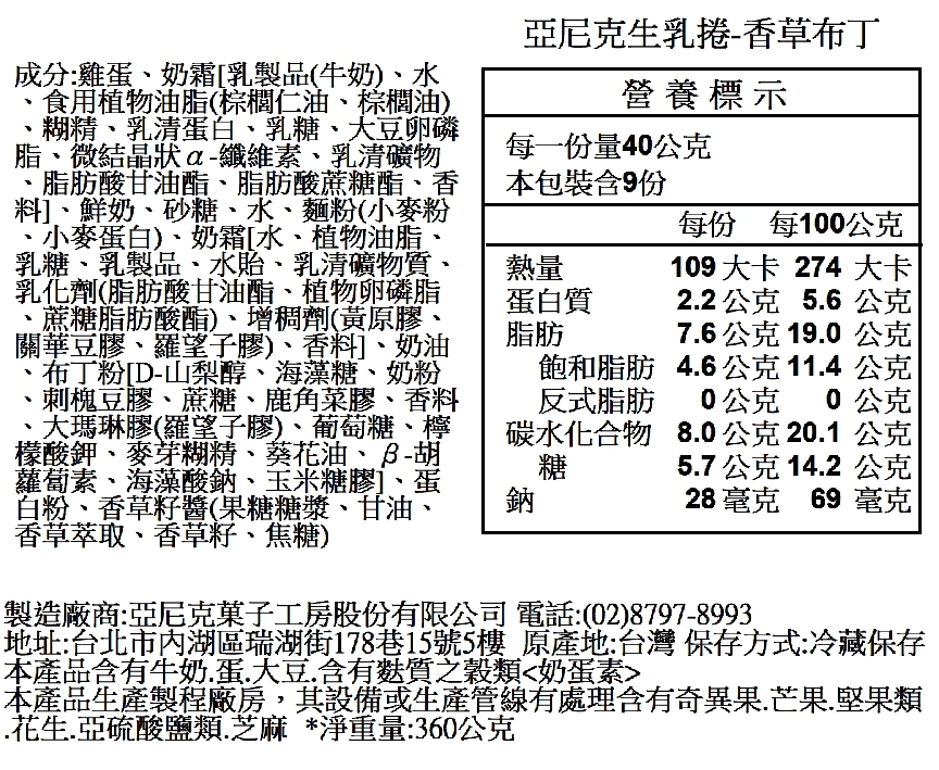 品名:亞尼克生乳捲-香草布丁