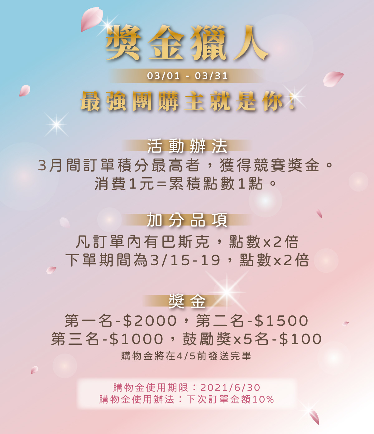 以下為得獎名次,並已發送購物金至帳號內,請自行至帳號內查看