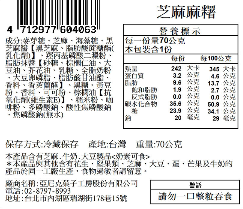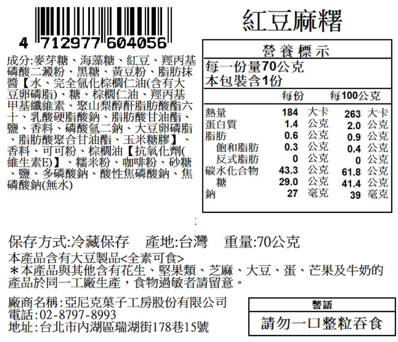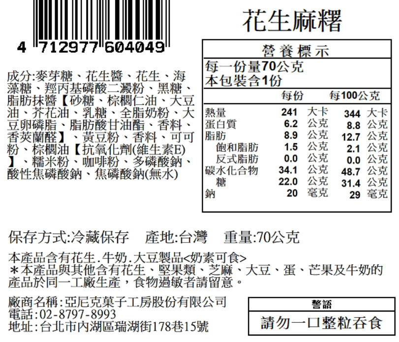 內容物:糯米/北港花生/萬丹紅豆/黑芝麻/黑糖