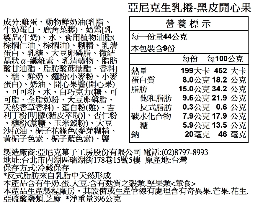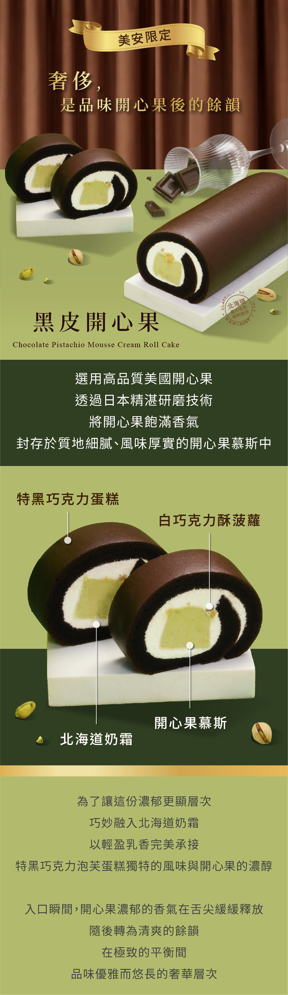 品名:亞尼克生乳捲-黑皮開心果