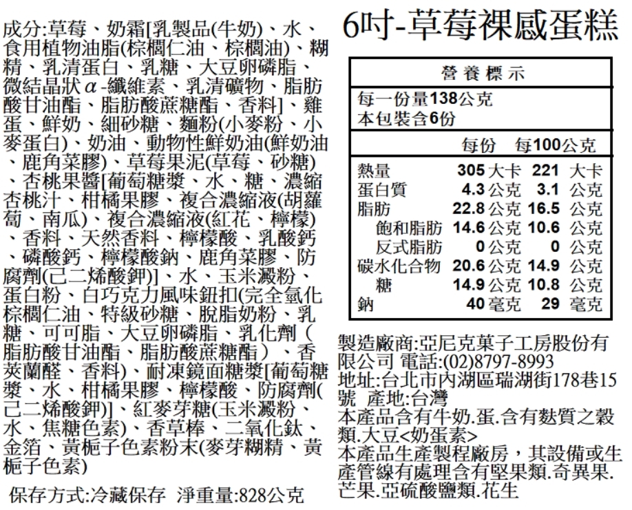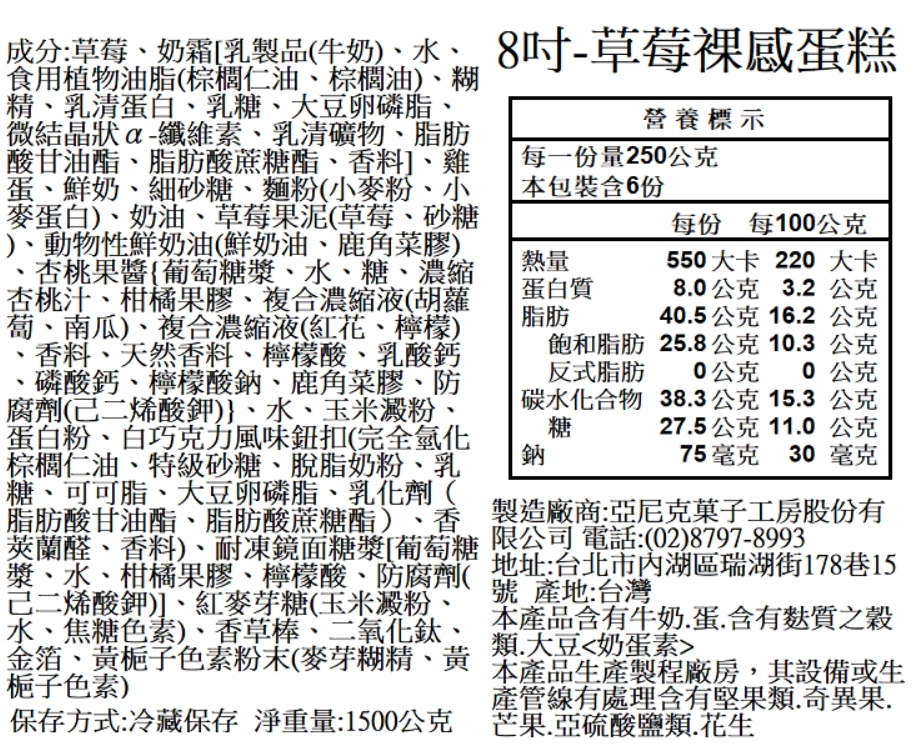 ※亞尼克使用的新鮮草莓因應不同產品需求設定不同允收標準。新鮮草莓為農作物,無論進口或台灣香水草莓,當產期不夠穩定時,生長形狀可能影響蛋糕裝飾顆數或微幅調整裝飾樣態。