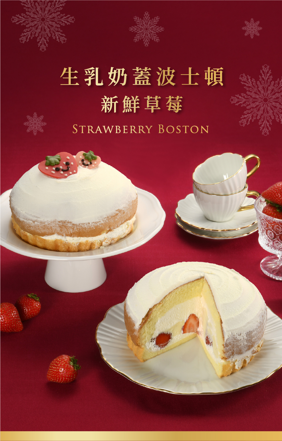 掌握波士頓蛋糕特有的細膩、蓬鬆與濃厚乳香。奢侈地使用大量的北海道奶霜與私房卡士達襯托香水草莓嬌豔欲滴的酸甜滋味,可以大口大口享受蛋糕與奶霜質地在嘴裡融化的暢快感!