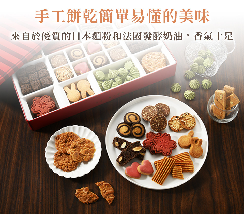 手工餅乾簡單易懂的美味來自於優質的日本麵粉和發酵奶油,香氣圓潤可口。