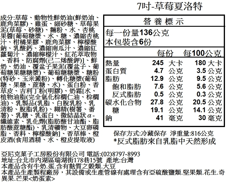 ※亞尼克使用的新鮮草莓因應不同產品需求設定不同允收標準。新鮮草莓為農作物,無論進口或台灣香水草莓,當產期不夠穩定時,生長形狀可能影響蛋糕裝飾顆數或微幅調整裝飾樣態。