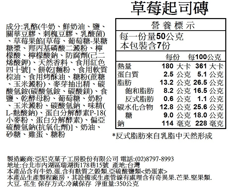 品名:亞尼克起司磚-草莓