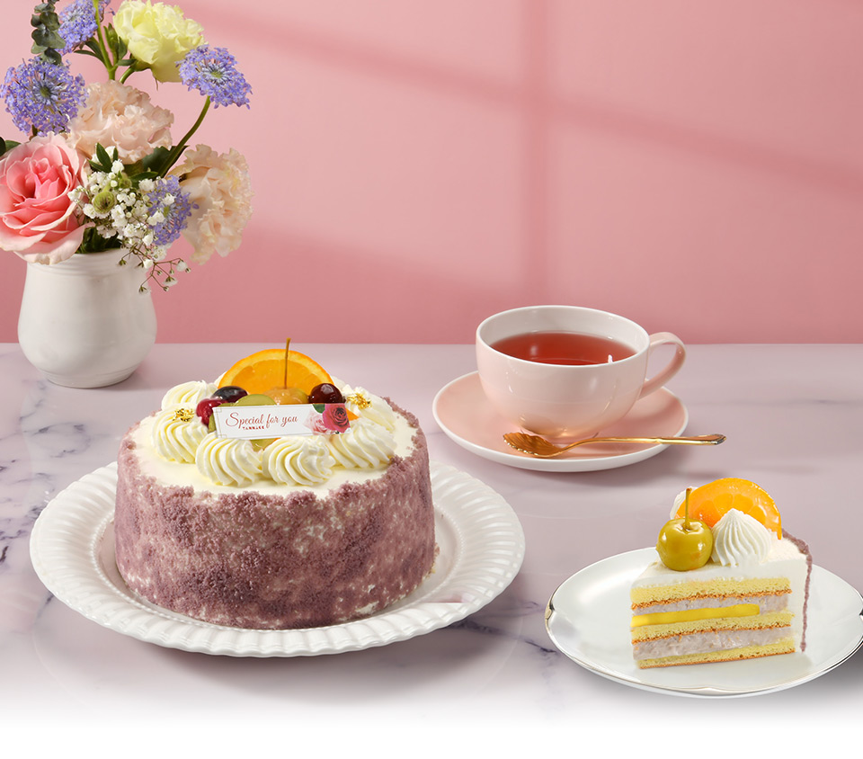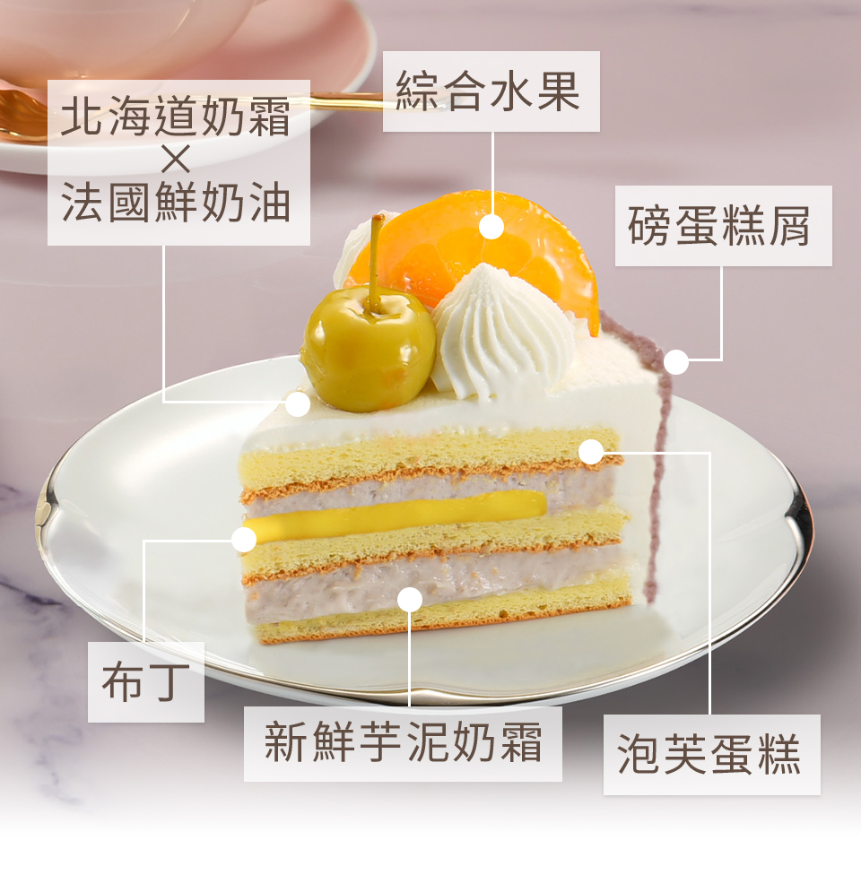 堅持天然食材,以蒸煮製成芋泥餡,紫芋濃郁香氣,讓蛋糕呈現最自然樸實的味道,蛋糕外觀特別以北海道奶霜營造純淨清爽感,給人「捨不得刮掉」的好吃感!